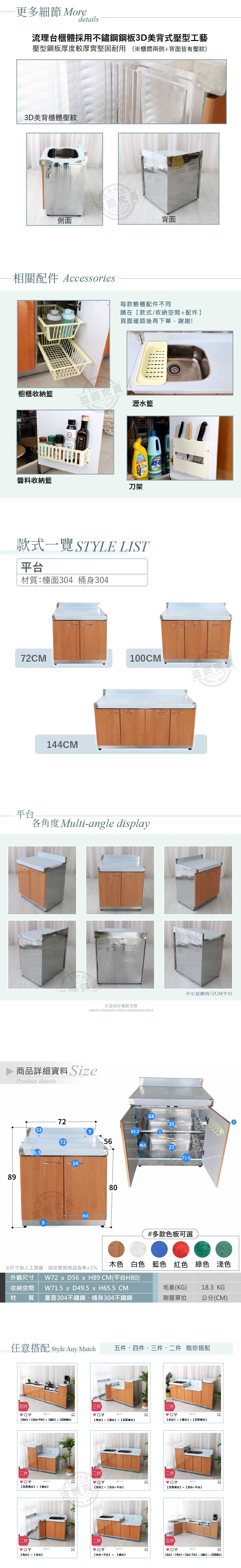 【Abis】客製商品-豪華升級款不鏽鋼72平台/流理台/工作台/收納廚具-多款門板可選(桶身304)淺綠色
