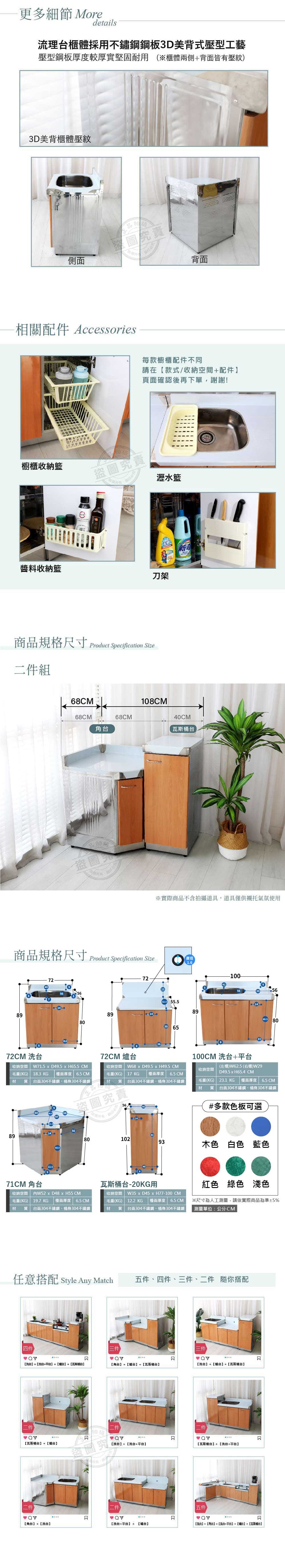 【Abis】客製商品-豪華升級款不鏽鋼二件組系統櫥櫃-角台+瓦斯桶台/流理台/收納廚具-多款門板可選(桶身304)木紋色