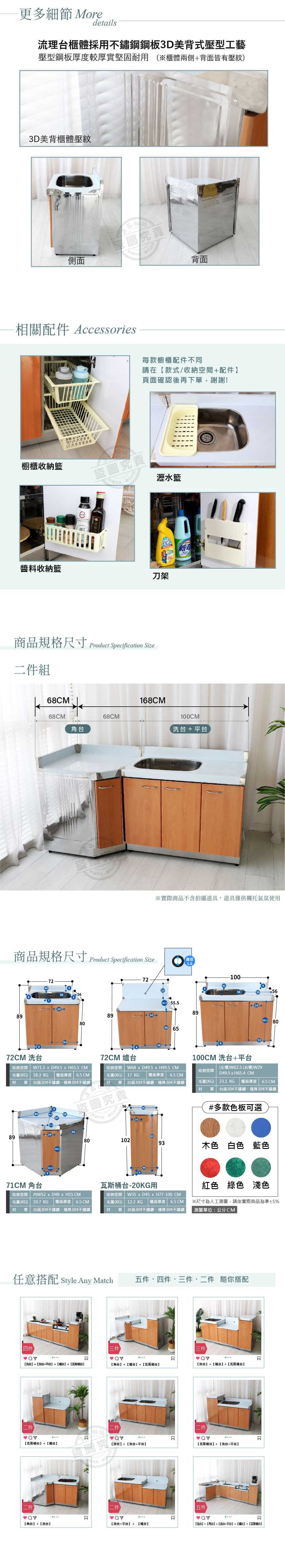 【Abis】客製商品-豪華款左右兩用不鏽鋼二件組系統櫥櫃-100洗台平台+角台/流理台-多款門板可選(桶身304)藍色-右水槽
