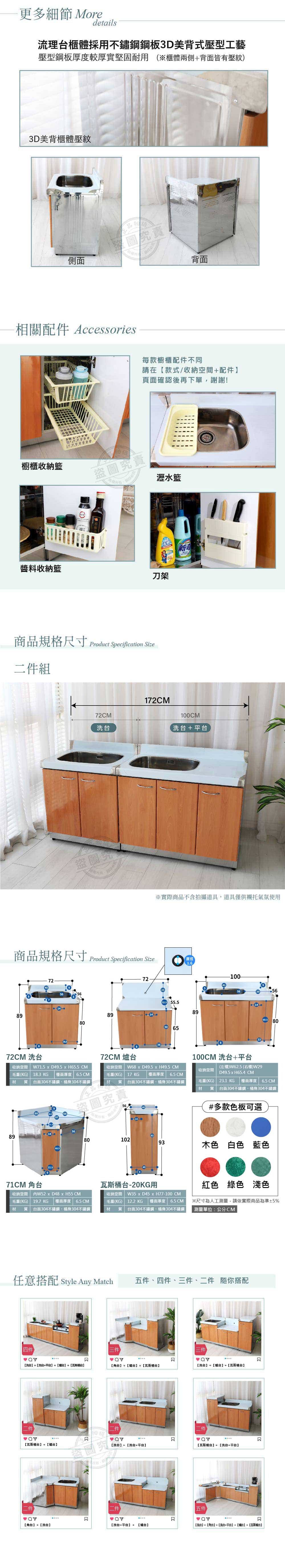 【Abis】客製商品-豪華款左右兩用不鏽鋼二件組系統櫥櫃-100洗台平台+72洗台/流理台-多款門板可選(桶身304)綠色-右水槽