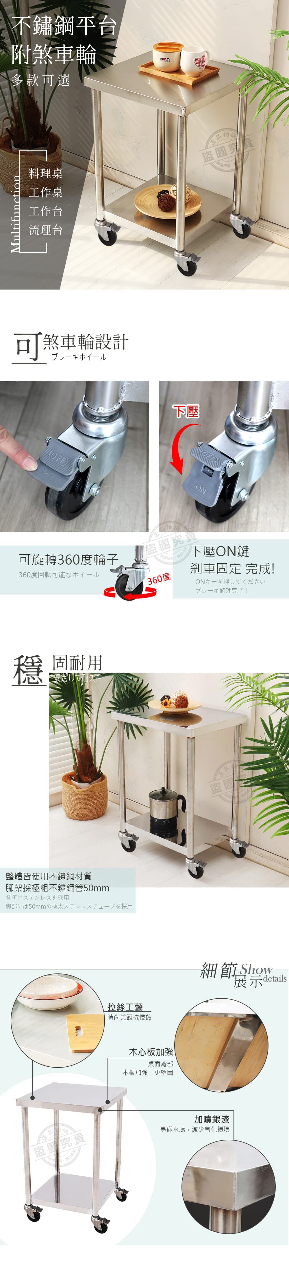 【Abis】客製商品-豪華升級版加牆款二層304不鏽鋼桌-附煞車輪/料理桌/工作桌/工作台/流理台(72X56CM)