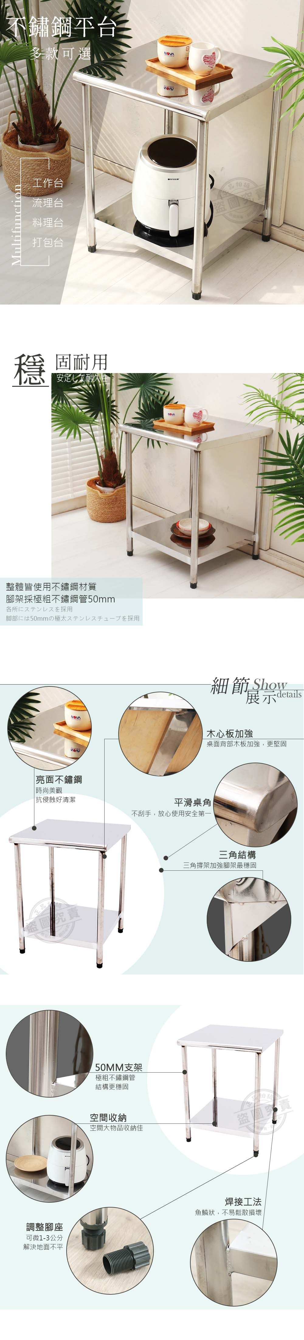【Abis】豪華升級版二層430不鏽鋼桌/料理桌(51X51CM)-1入