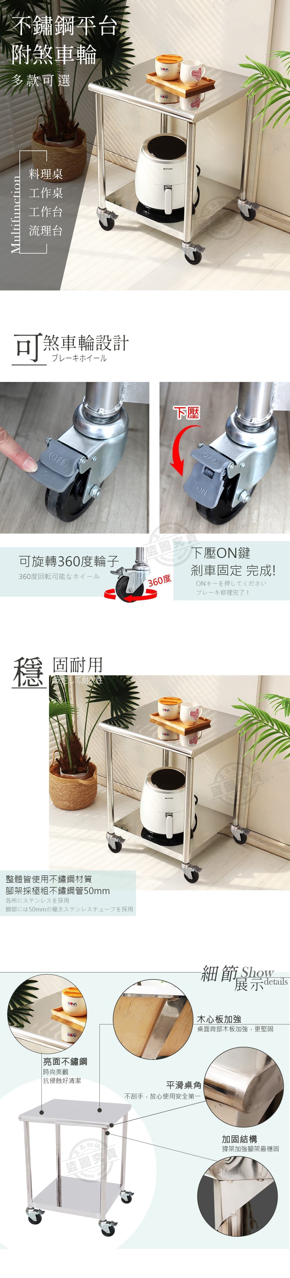 【Abis】客製商品-豪華升級版60X60CM二層圓角430不鏽鋼桌-附煞車輪/料理桌/工作桌/工作台/流理台(2尺X2尺)