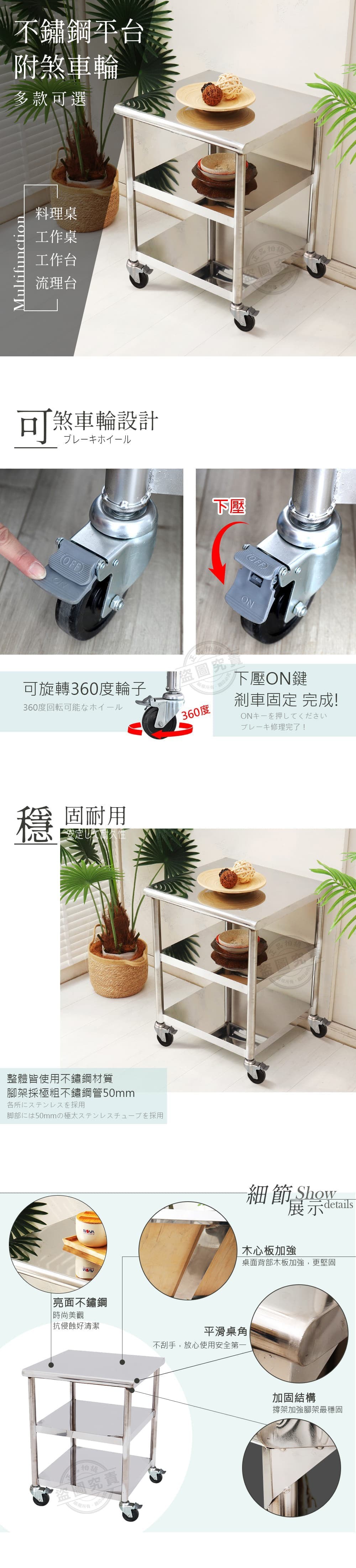 【Abis】客製商品-豪華升級版60X90CM三層圓角304不鏽鋼桌-附煞車輪/料理桌/工作桌/工作台/流理台(2尺X3尺)