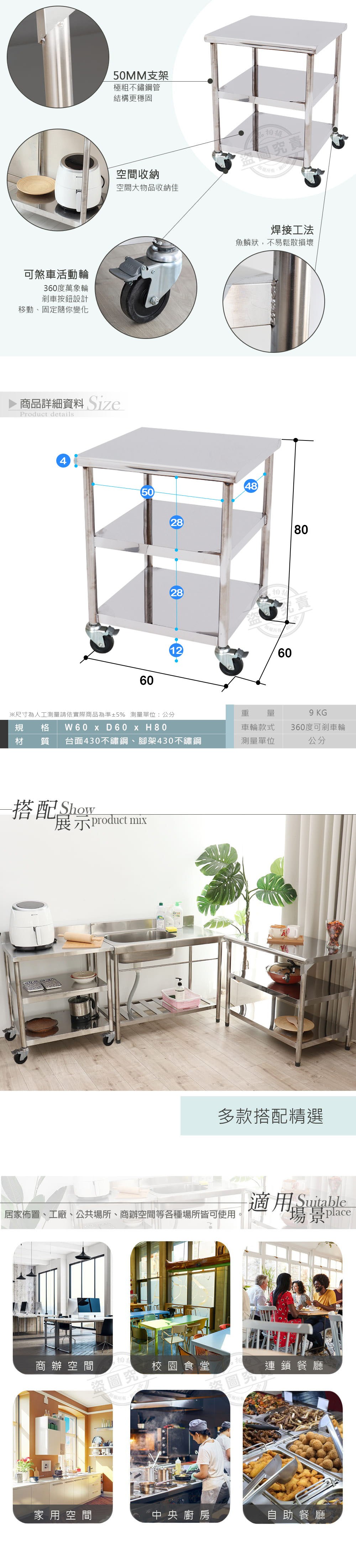 【Abis】客製商品-豪華升級版60X60CM三層圓角430不鏽鋼桌-附煞車輪/料理桌/工作桌/工作台/流理台(2尺X2尺)