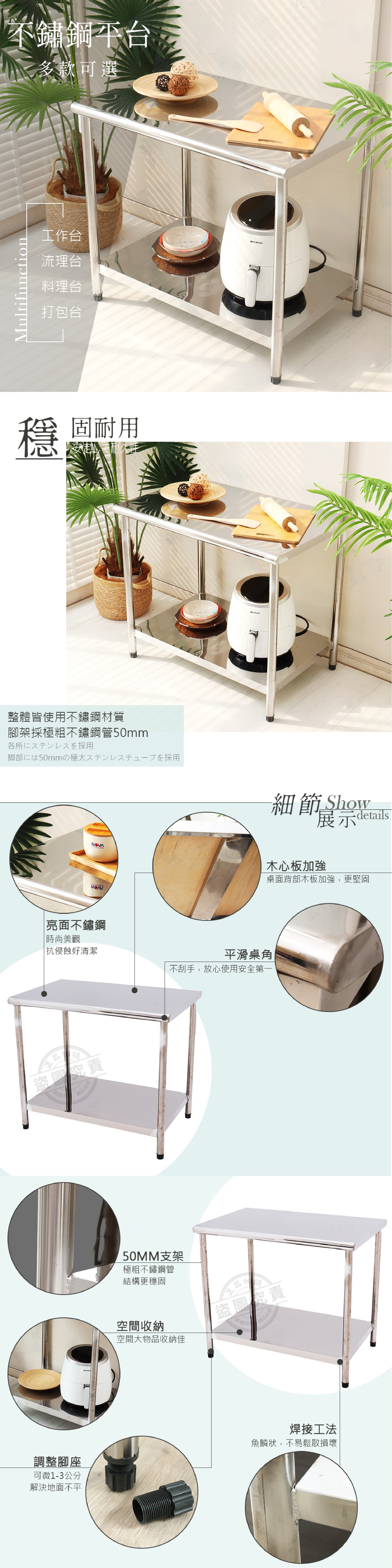 【Abis】升級版75x120CM二層圓角304不鏽鋼桌2.5尺X4尺