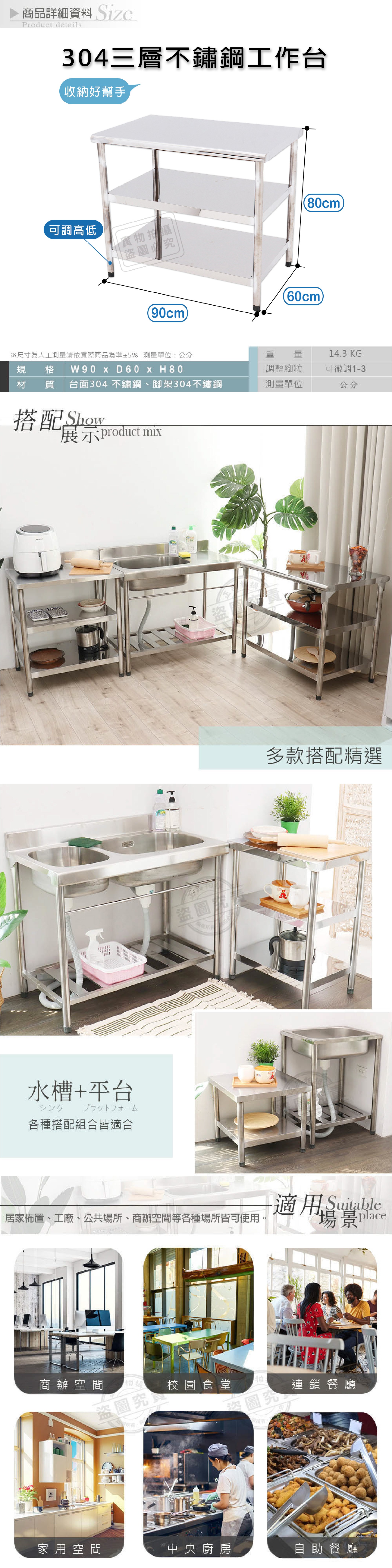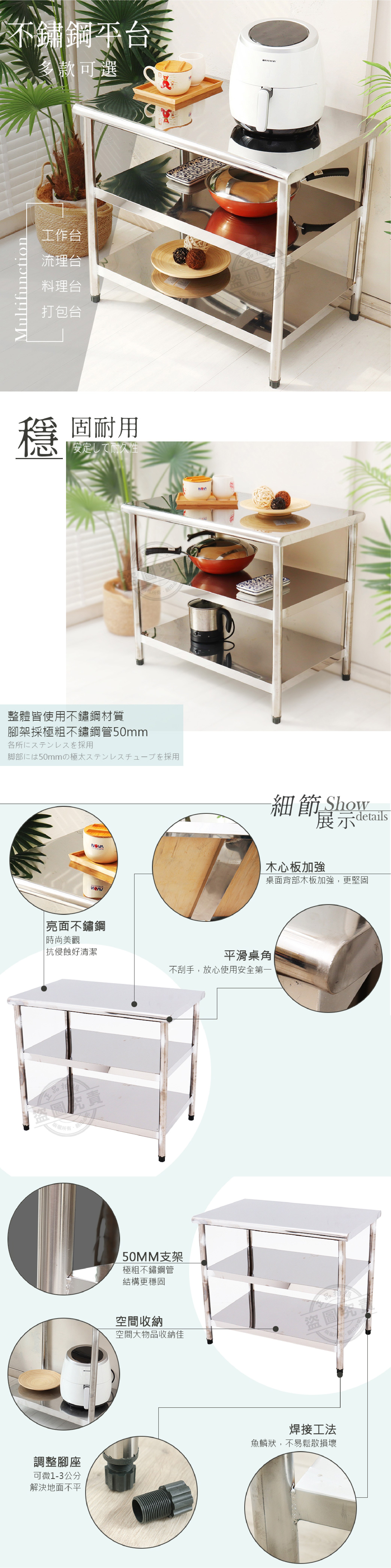 【Abis】豪華升級版三層圓角304不鏽鋼桌/料理桌(60X90CM)-1入