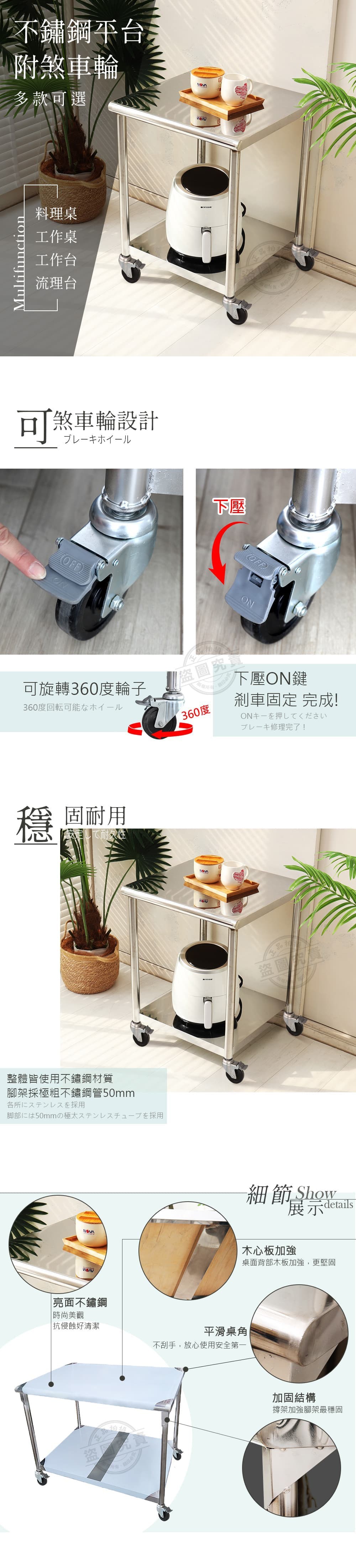 【Abis】客製商品-豪華升級版加牆款二層304不鏽鋼桌-附煞車輪/料理桌/工作桌/工作台/流理台(100X56CM)