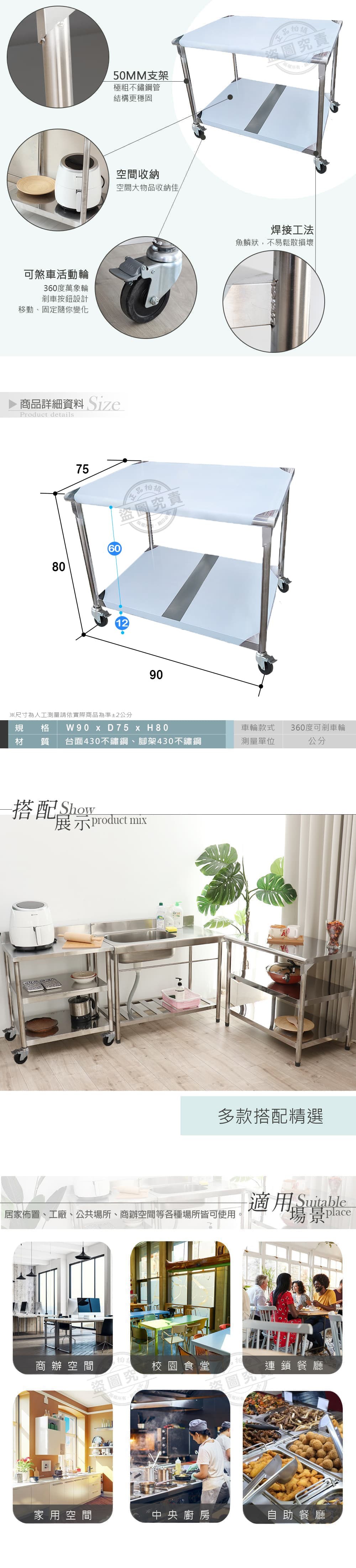 【Abis】客製商品-豪華升級版75X120CM三層圓角304不鏽鋼桌-附煞車輪/料理桌/工作台/流理台(2.5尺x4尺)
