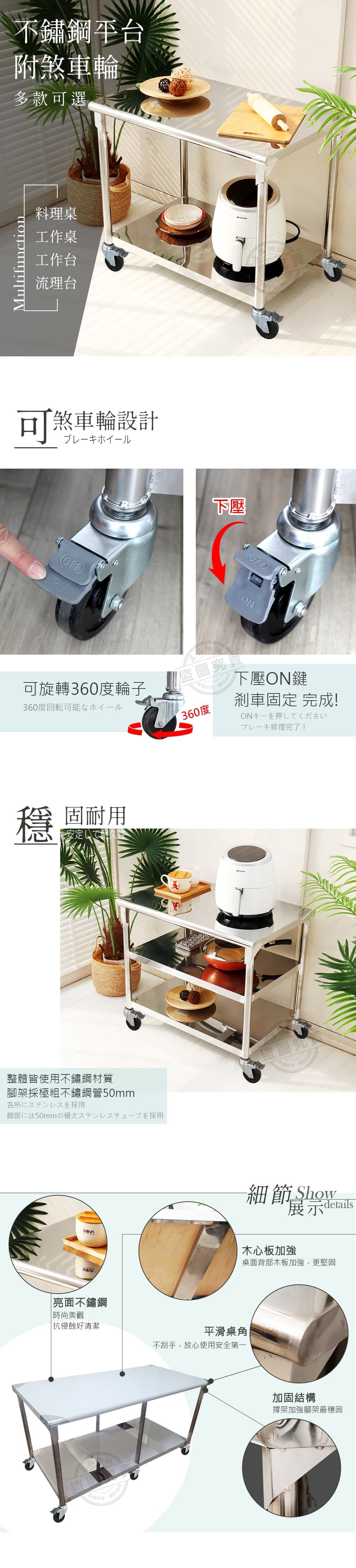【Abis】客製商品-豪華升級版60X120CM二層圓角304不鏽鋼桌-附煞車輪/料理桌/工作桌台/流理台(2尺x4尺)