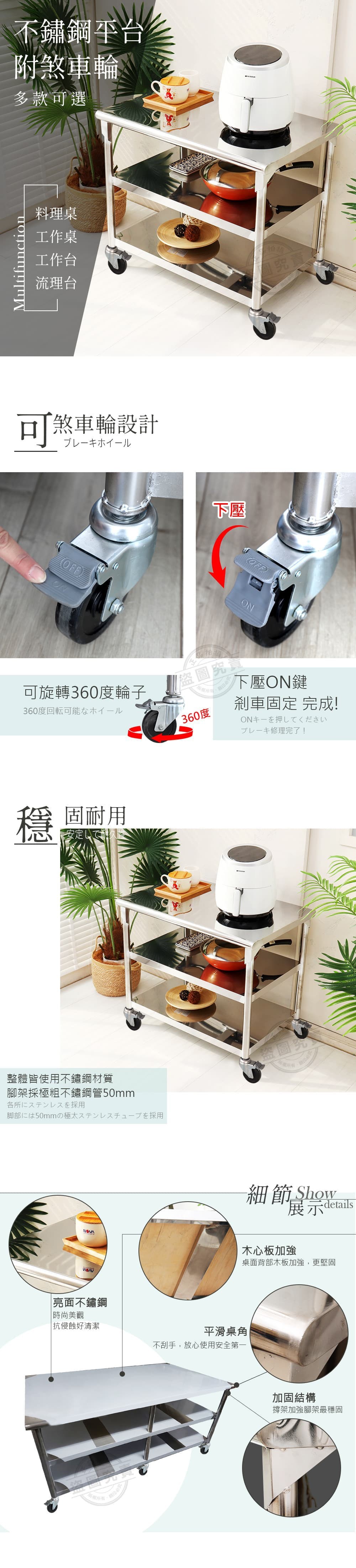 【Abis】客製商品-豪華升級版90X150CM三層圓角430不鏽鋼桌-附煞車輪/料理桌/工作台/流理台(3尺X5尺)