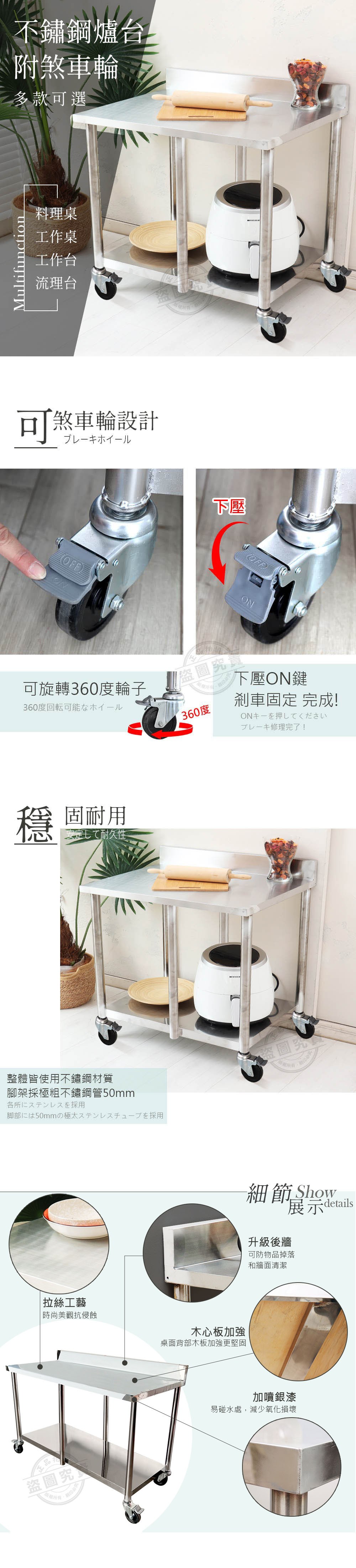 【Abis】客製商品-豪華升級版加牆款二層304不鏽鋼桌-附煞車輪/料理桌/工作桌/工作台/流理台(100X56CM)