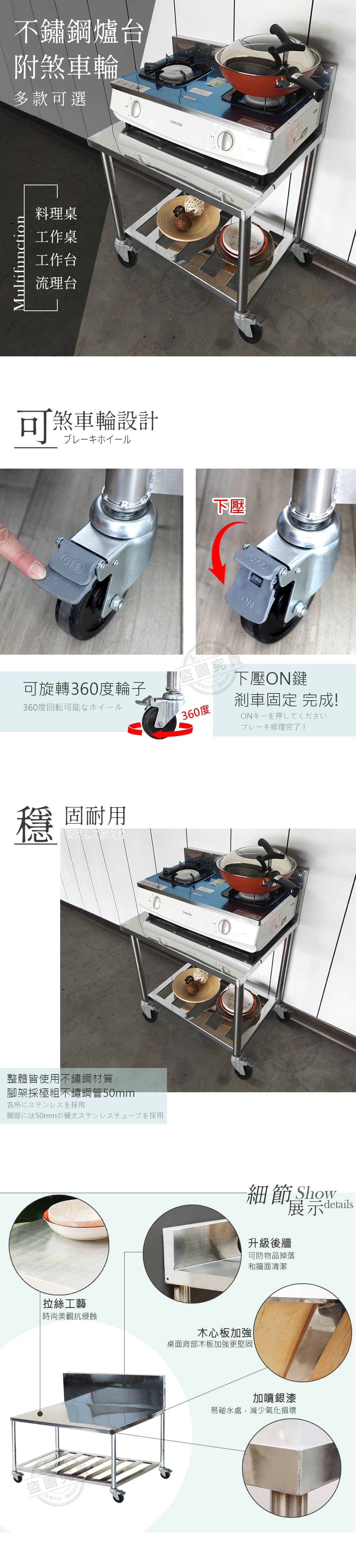 【Abis】客製商品-豪華升級加高牆款二層304瓦斯爐台-附煞車輪/料理桌/工作桌/工作台/流理台(144X56CM)
