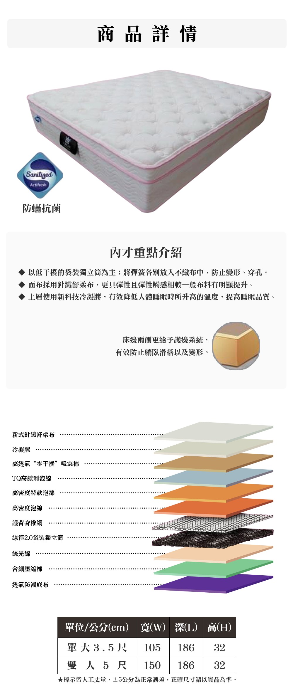 【顛覆設計】針織舒柔表布 抗菌 護邊 舒適健康獨立筒床墊(單大3.5尺)