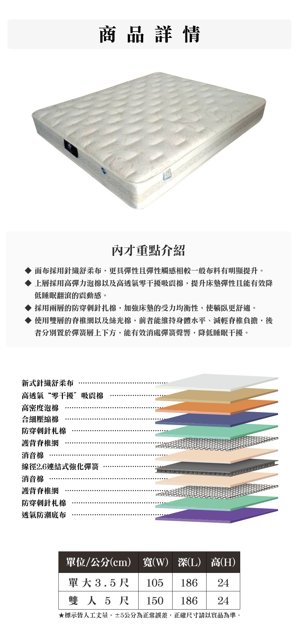 【顛覆設計】針織舒柔表布 三線 舒適健康彈簧床墊(單大3.5尺)