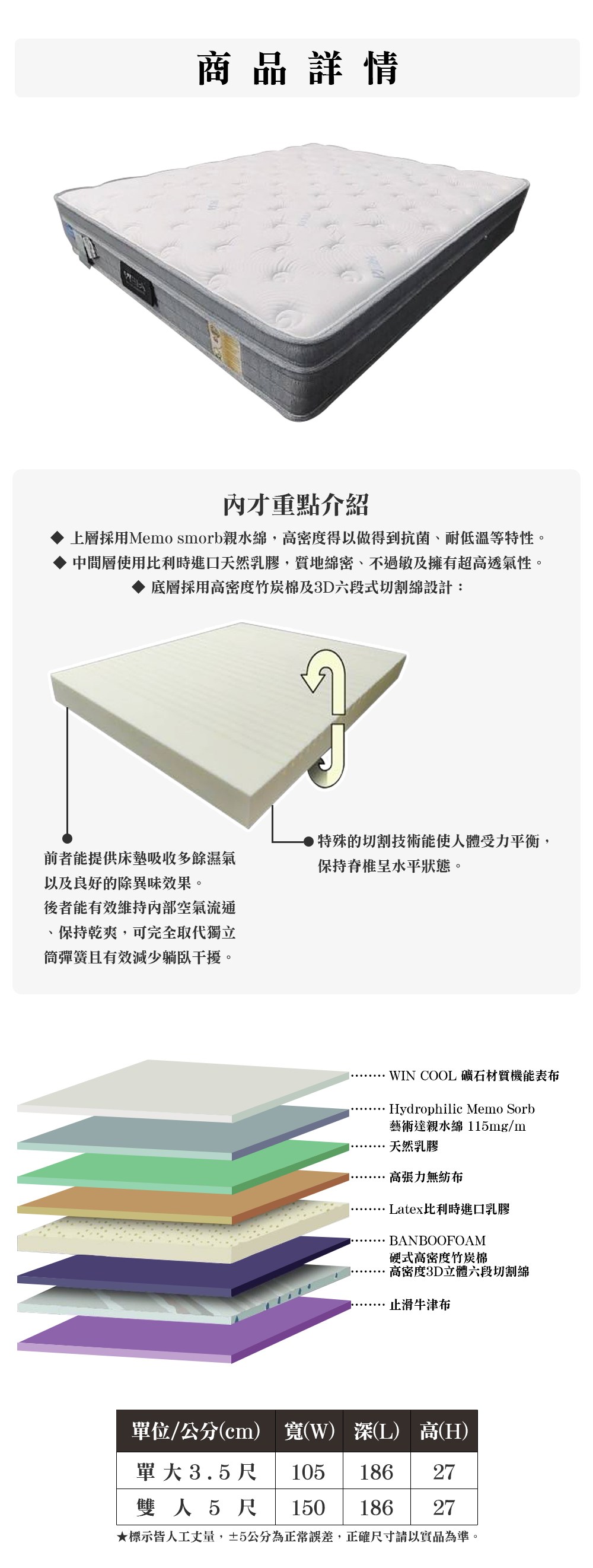 比佛利涼感乳膠獨立筒床墊3562單人加大