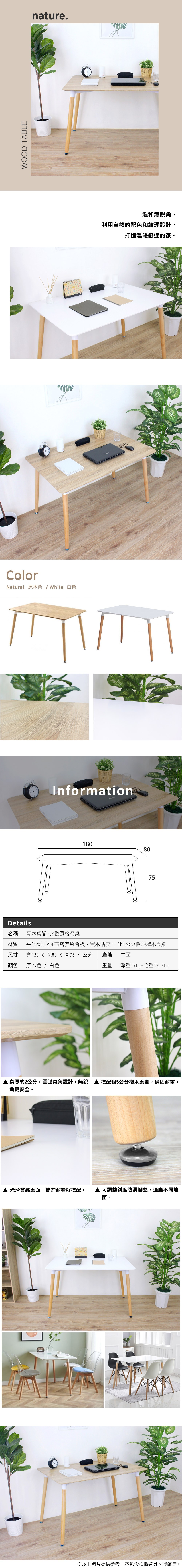 【頂堅】北歐風格餐桌(深80x寬120x高75/公分)大桌面-書桌/電腦桌/辦公桌/會議桌(實木桌腳)-二色可選
