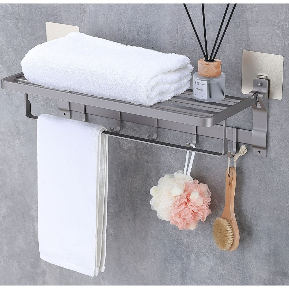 浴室置物架 摺疊架帶桿 50cm 灰色 1個
