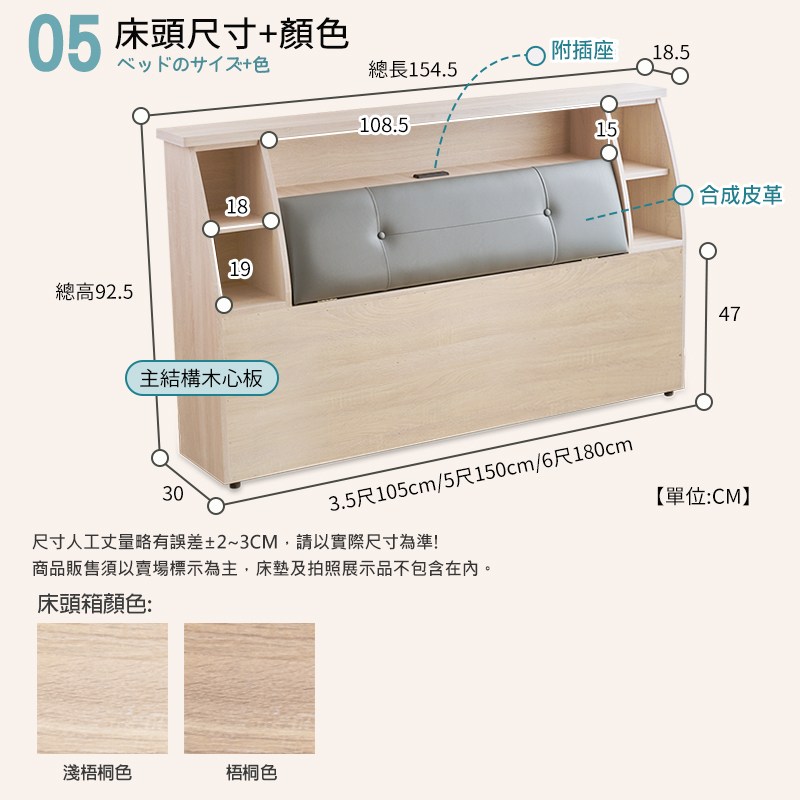 此賣場僅販售雙人5尺 可收納床頭箱