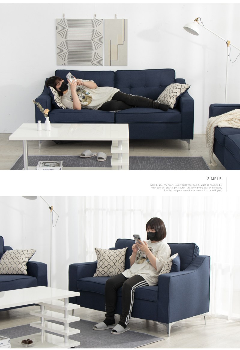 【Hampton 漢汀堡】湯瑪斯三人沙發含腳凳-布面-多色可選(L型沙發/3人座/布面/含腳凳/布寶石藍