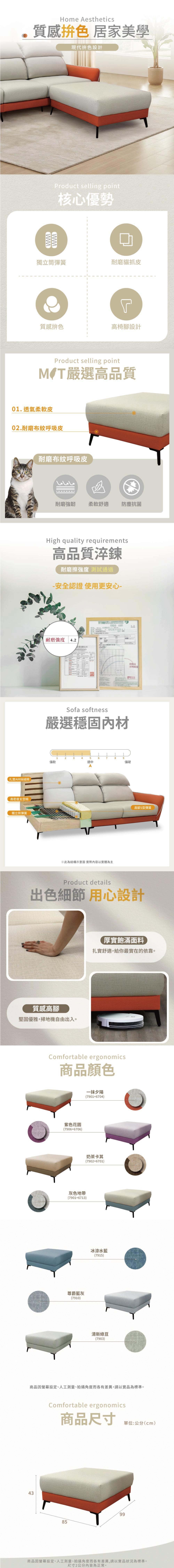 ASSARI-米切爾機能耐磨布獨立筒腳椅(83x83cm)腳椅