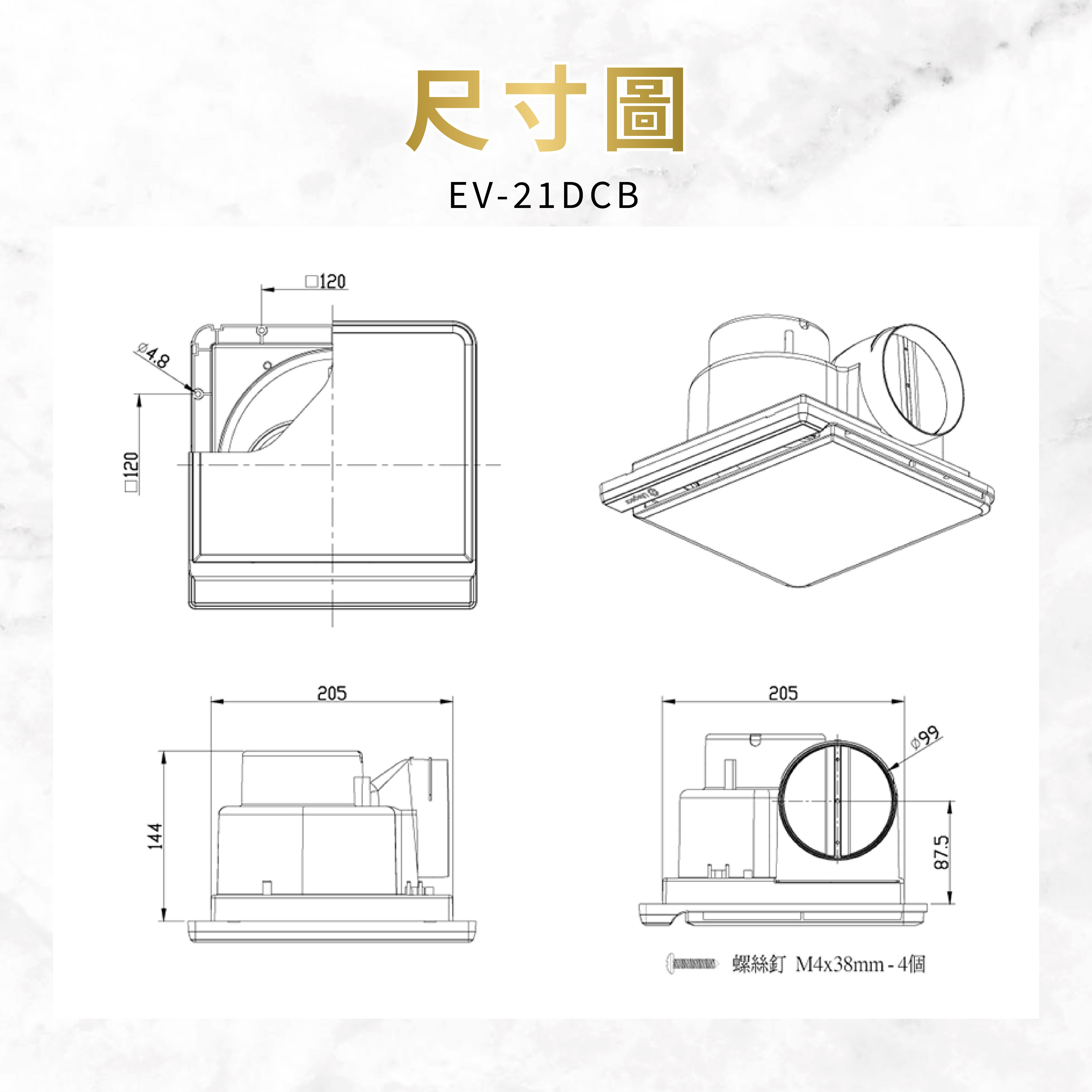 【樂奇LIFEGEAR】奇靜超靜音換氣扇 EV-21G1 高靜壓馬達 110V(不含安裝)