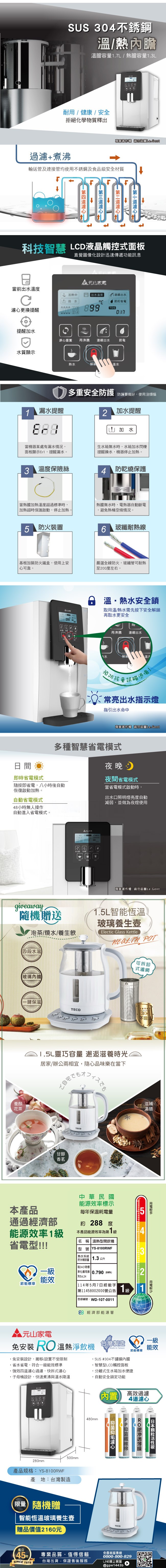 【元山】一級能效省電型RO溫熱淨飲機
