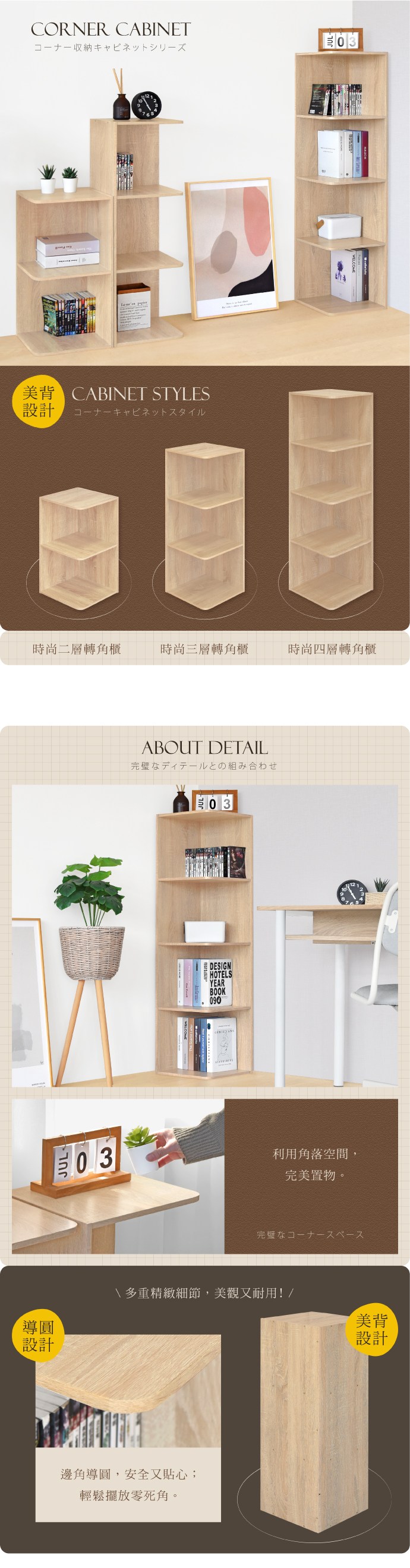 《HOPMA》時尚二層轉角櫃 台灣製造 角落書櫃 儲物收納架-淺橡(漂流)木
