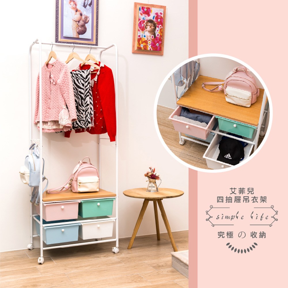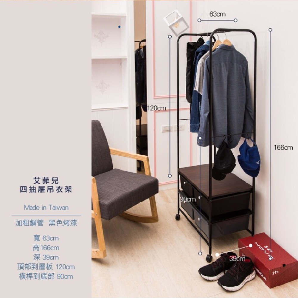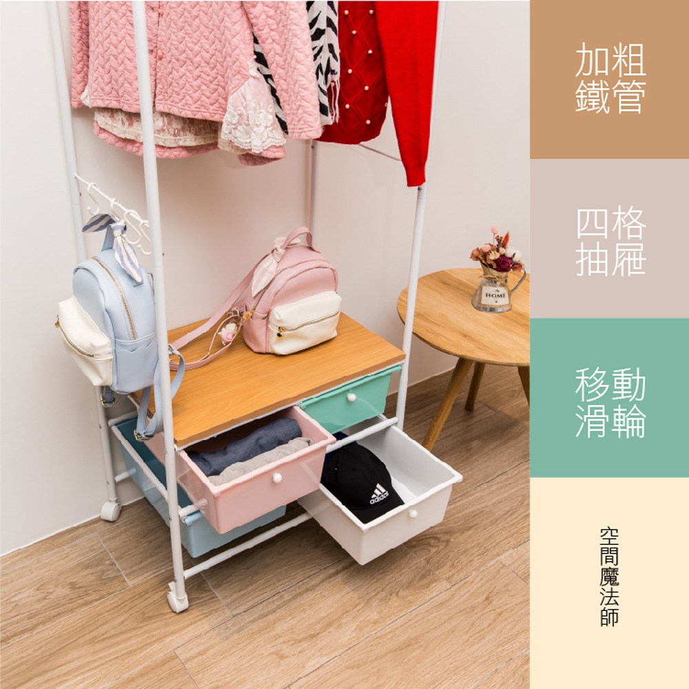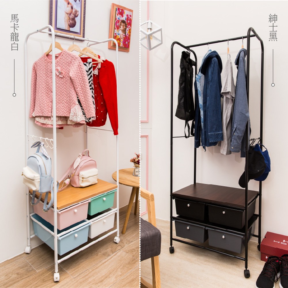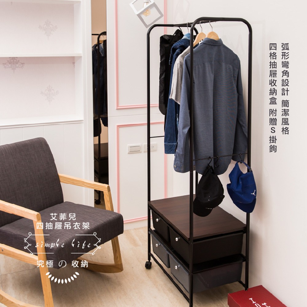【拜爾家居】多功能四抽屜衣櫥架- 黑 MIT台灣製造 贈S掛勾 衣櫥 掛衣架