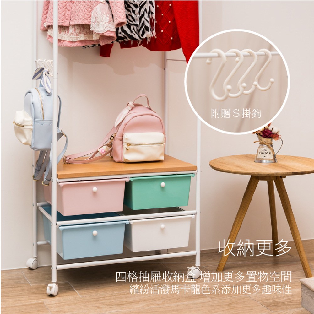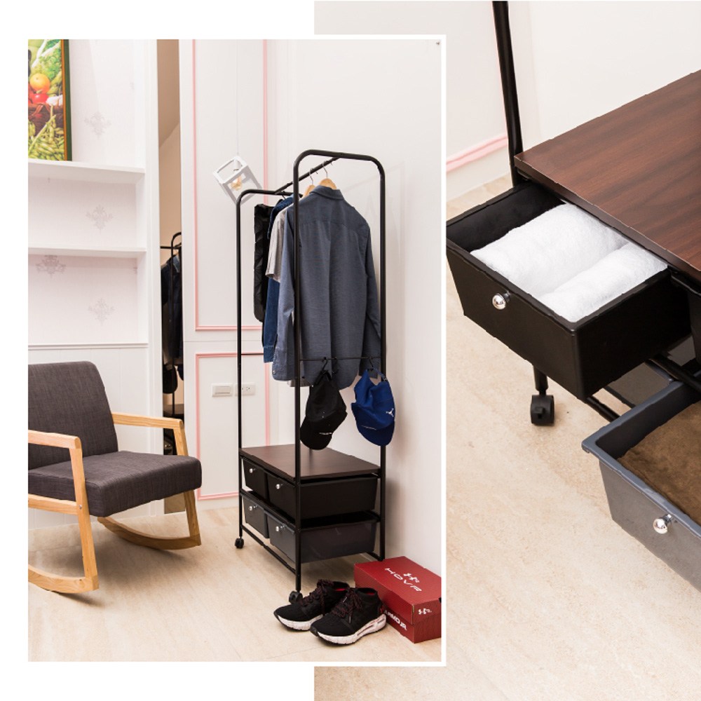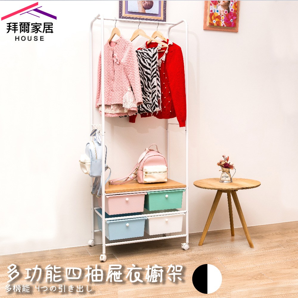 【拜爾家居】多功能四抽屜衣櫥架- 黑 MIT台灣製造 贈S掛勾 衣櫥 掛衣架