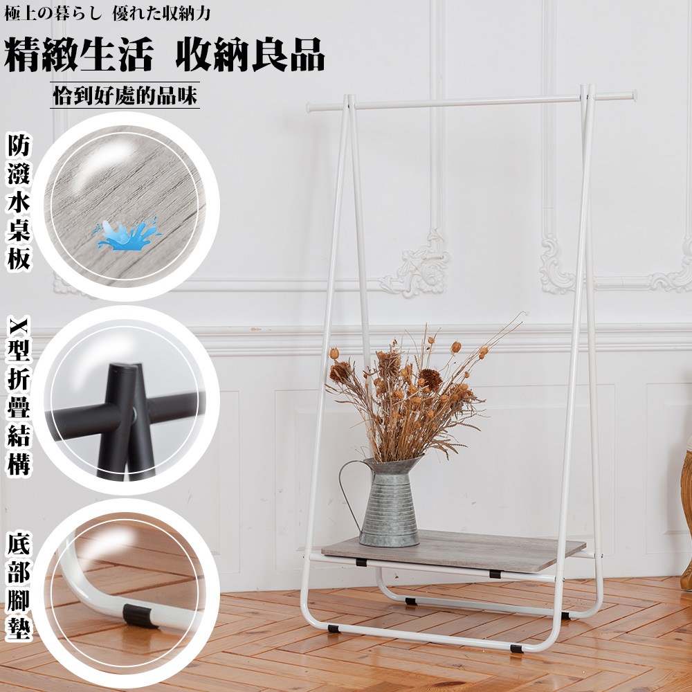 Life 日式簡約 多功能雙層落地衣帽架/掛衣架/置物架 鋼架材質 帶煞車滾輪設計 145 x 60 x 30cm 鋼琴白