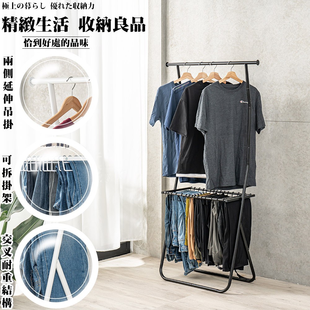 【拜爾家居】Pro+衣褲收納架-質感黑 台灣製造 收納架 褲架 掛衣架 衣帽架