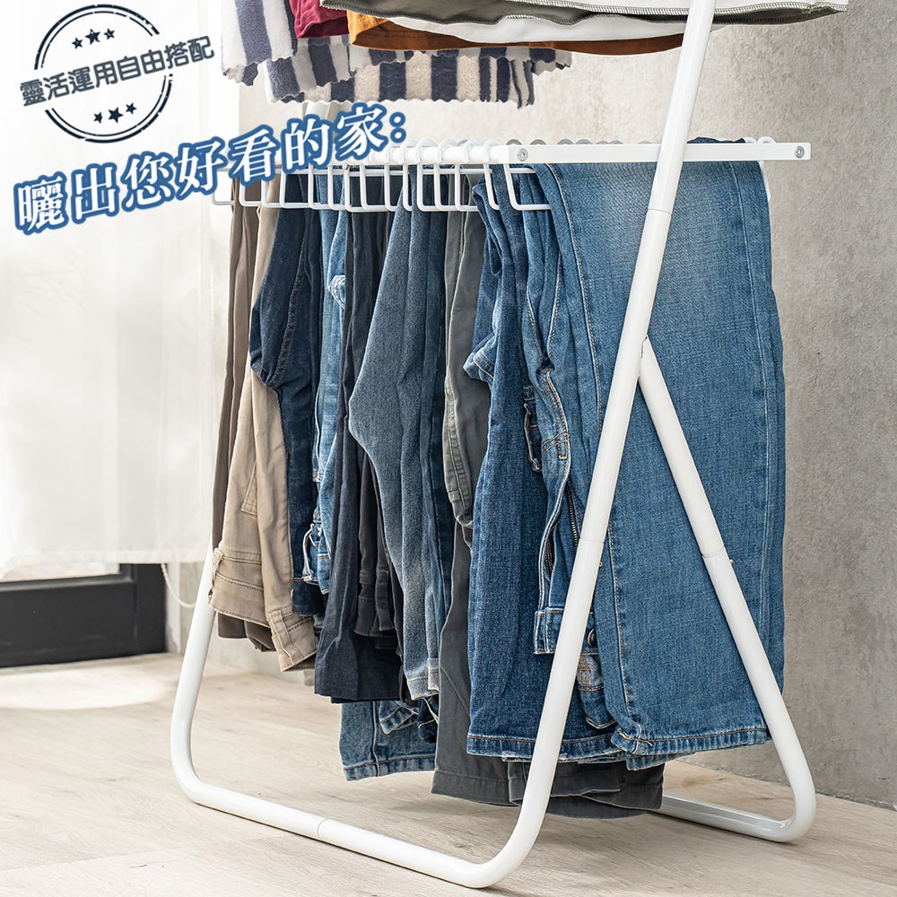 【拜爾家居】Pro+衣褲收納架-潔淨白 台灣製造 收納架 褲架 掛衣架 衣帽架 衣架