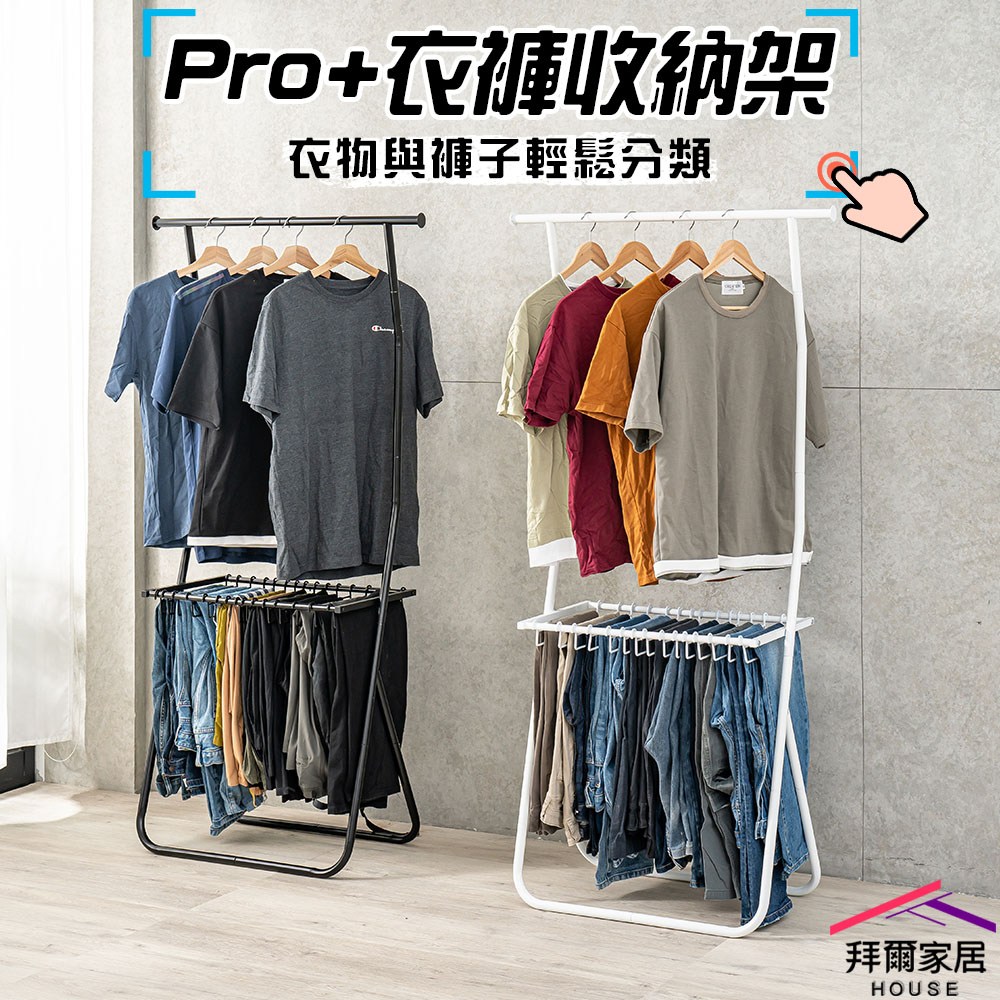 【拜爾家居】Pro+衣褲收納架-質感黑 台灣製造 收納架 褲架 掛衣架 衣帽架