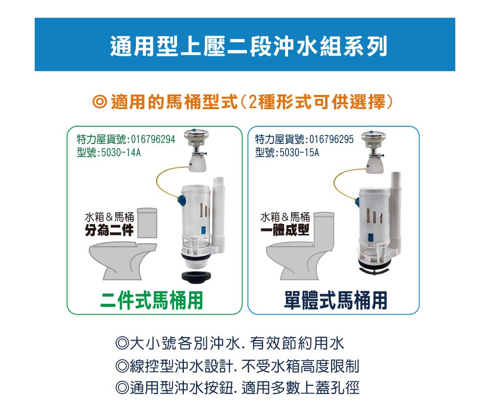 - 特力屋提供各種馬桶配件可供選購,從緩降馬桶蓋、分段式馬桶沖洗器、水箱零件等,提供齊全的商品規格,讓您簡單更換,擁有健康舒適的衛浴空間。