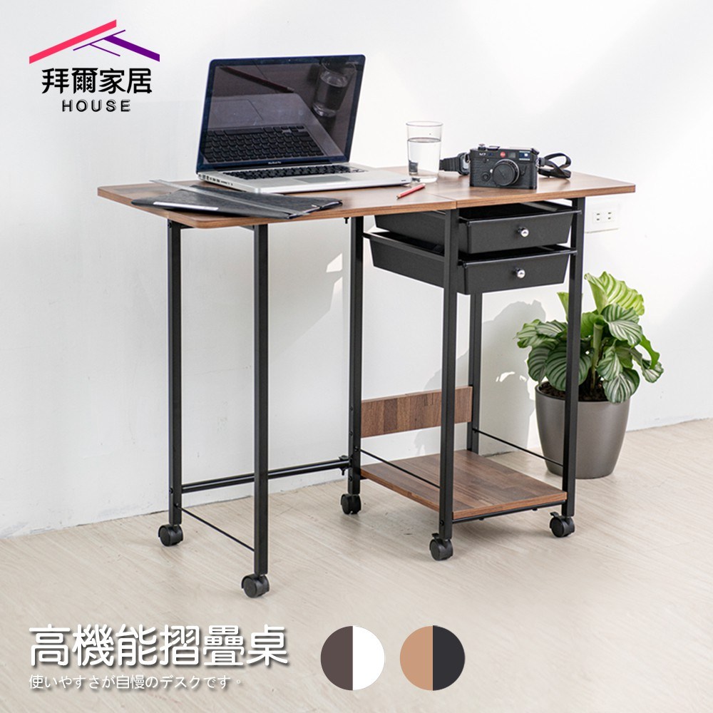 【拜爾家居】高機能摺疊桌 山水白 MIT台灣製造 附抽屜 結構加強版 收納折疊桌 電腦桌