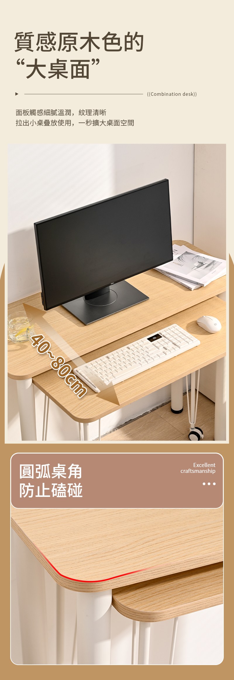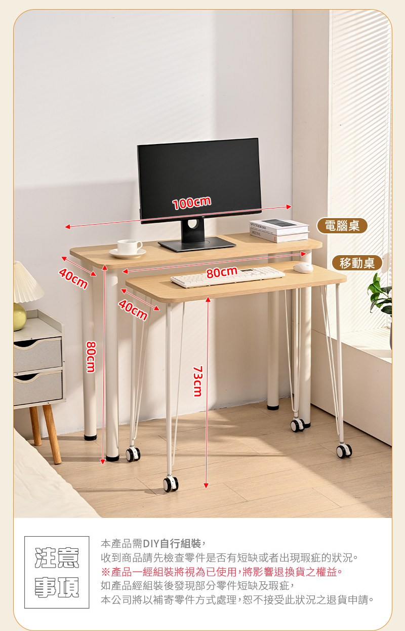 【慢慢家居】SGS認證低甲醛-靈巧組合桌 單桌-80cm可移動電腦桌(電腦桌 書桌 書桌組)組合桌-0.8m移動桌(橡木)
