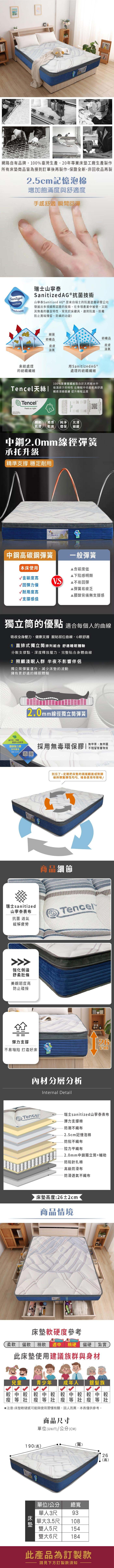 [愛傢舒眠館]催眠絲 - 天絲棉三線乳膠獨立筒床墊