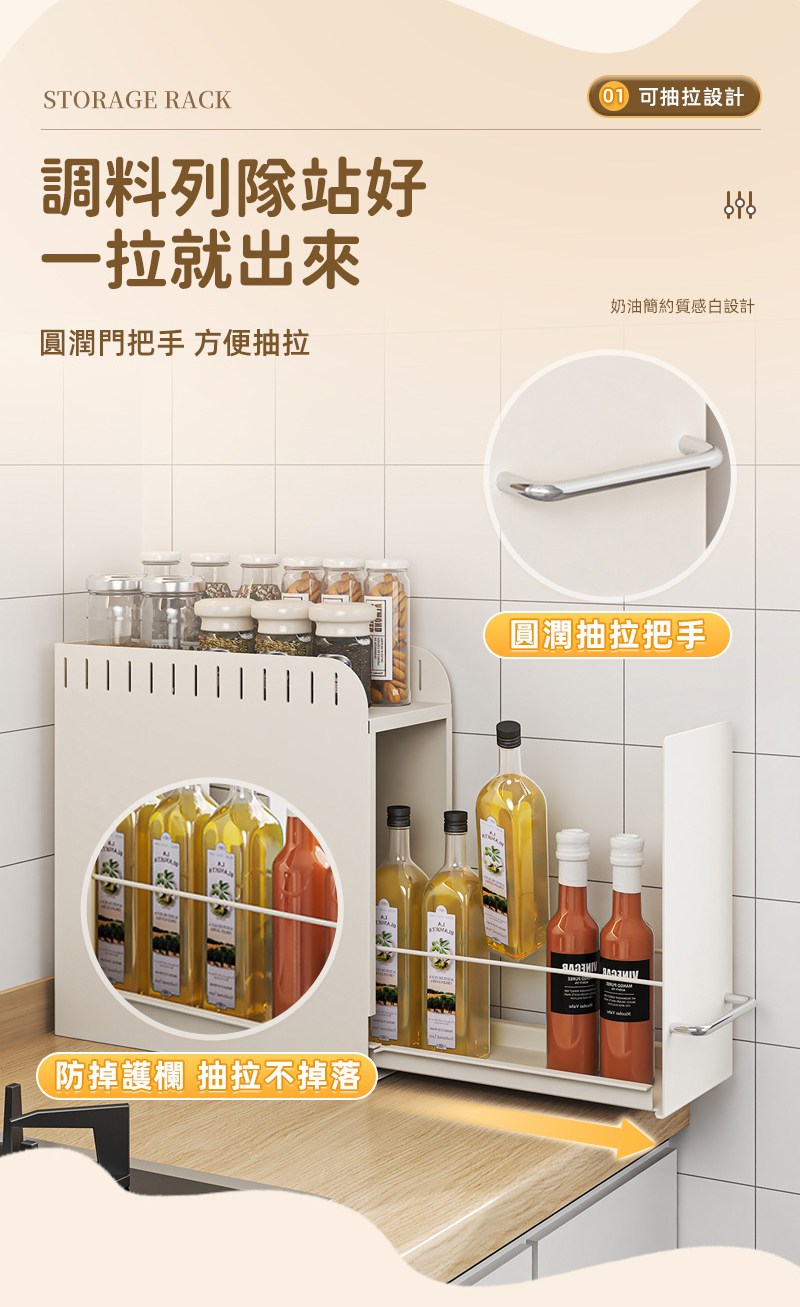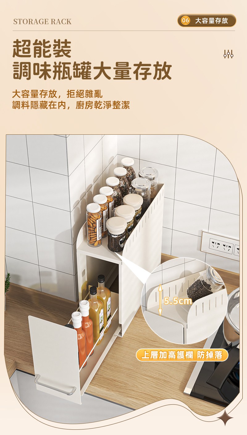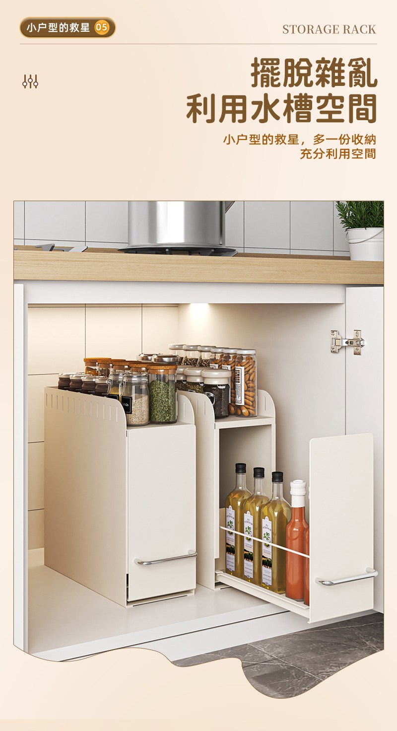 【慢慢家居】窄款可抽拉多功能置物架 調料架 廚房收納架 置物架 轉角架 隙縫架 瓶罐收納調料窄抽