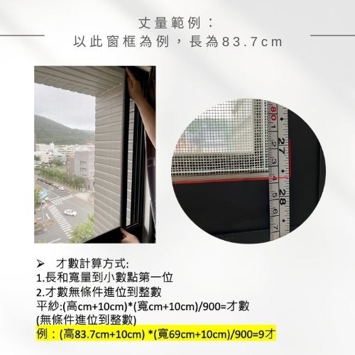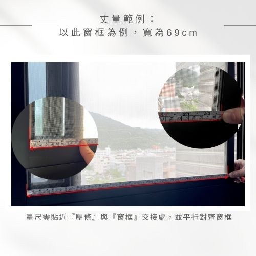 量測紗網尺寸時請量測鋁框內的長&寬(單位-公分)(如圖示)