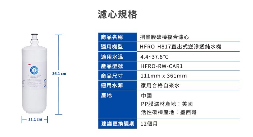 3M HFRO 摺疊膜碳棒複合濾心CAR1