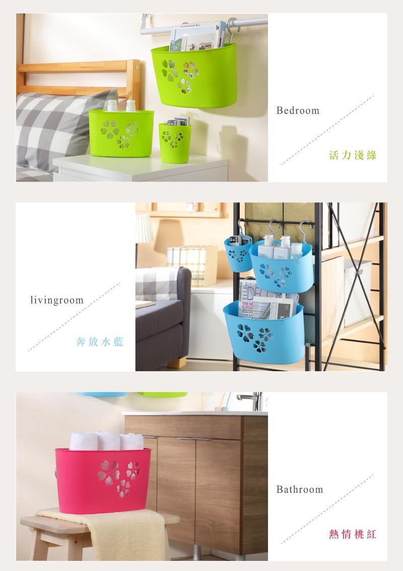 GIMI 吉米 提耳籃 PP材質 橢圓形收納籃 33 x 21 x 15.7cm 藍色/粉色/綠色 顏色隨機 6個