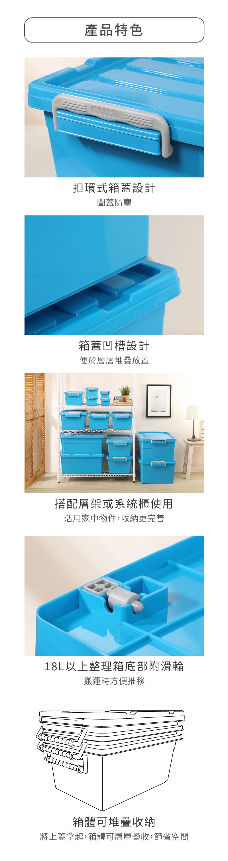 KEYWAY Best手提收納箱/HK8201/20L/附輪/藍/6入/組