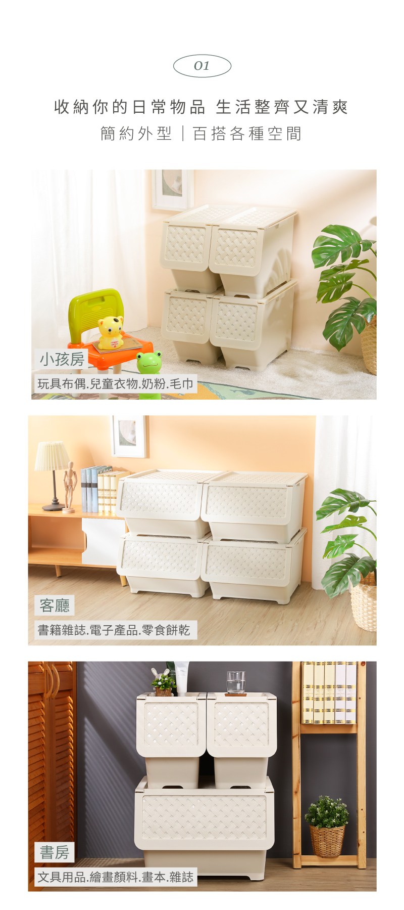 EZLIVING 滑蓋收納箱 象牙白色 455 x 410 x 315mm 2個