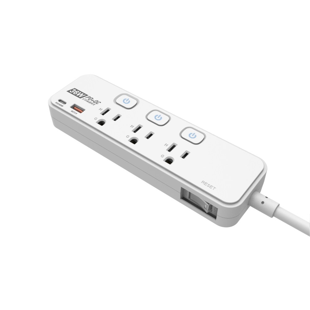特力屋 4開3插PD36W按壓式開關延長線 1.8M
