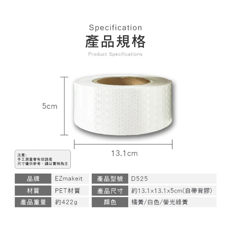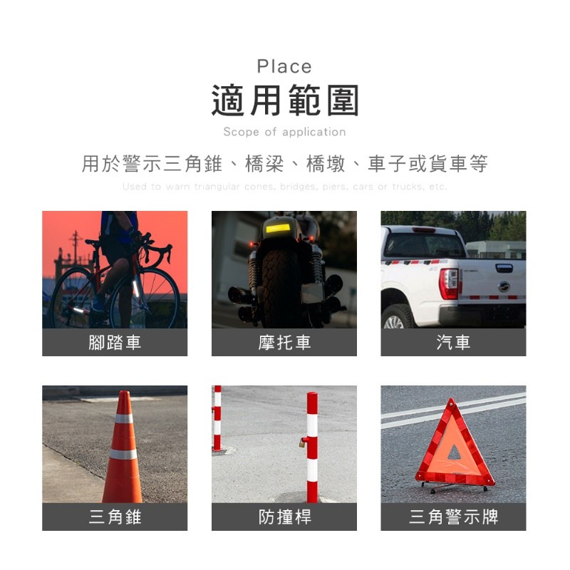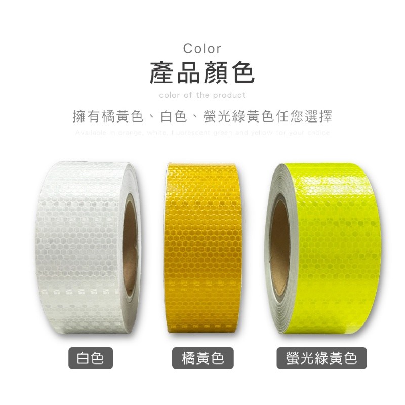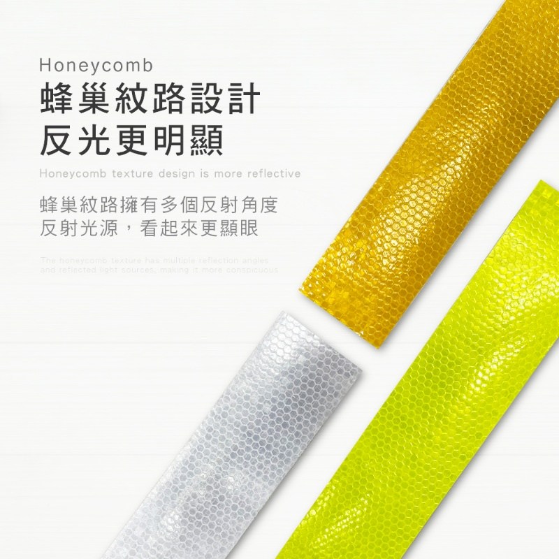產品特色: 1.反光設計減少危險發生 2.自帶背膠設計黏性強 3.提高夜晚行駛安全 4.耐磨防水不怕脫落 5.蜂巢紋路反光更明顯 6.多款顏色任您挑選 |