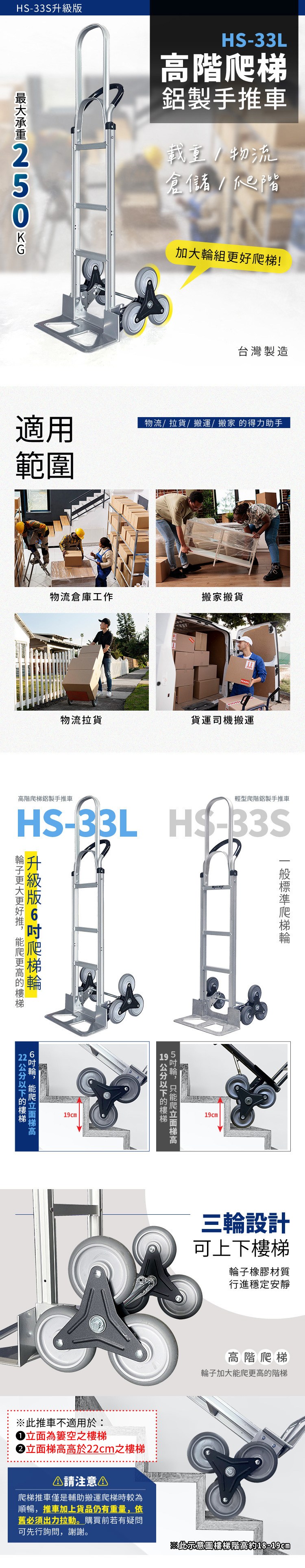 【大船回港】輕型爬階鋁製手推車-高把手 (HS-33S)