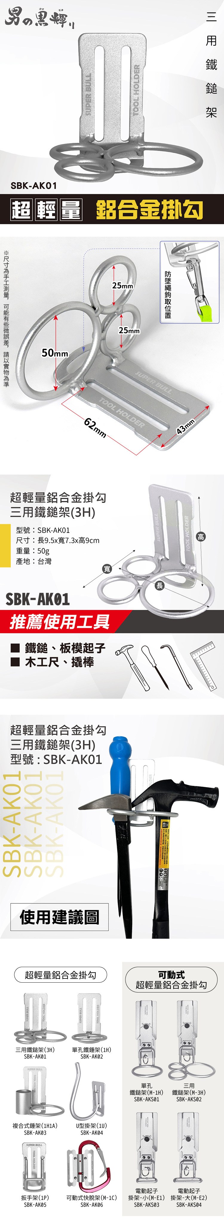 超輕量鋁合金掛勾-三用鐵鎚架(3H) SBK-AK01