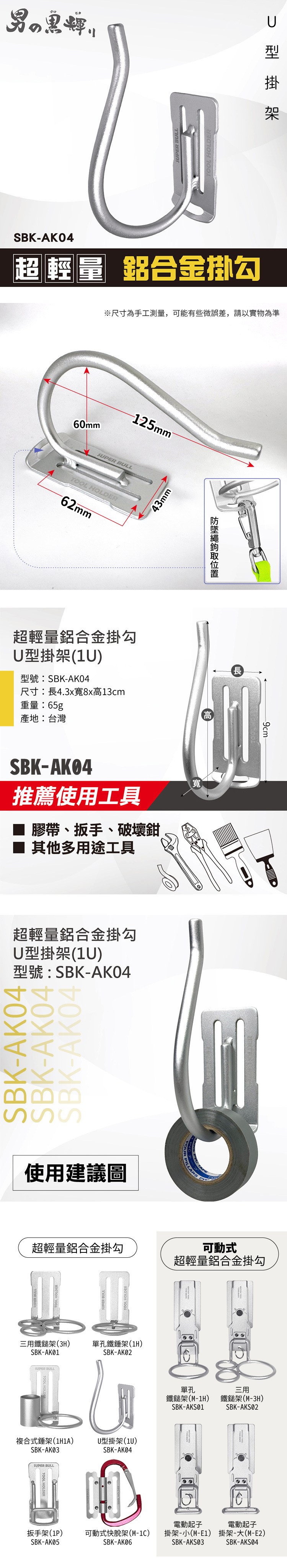 超輕量鋁合金掛勾-U型掛架(1U) SBK-AK04