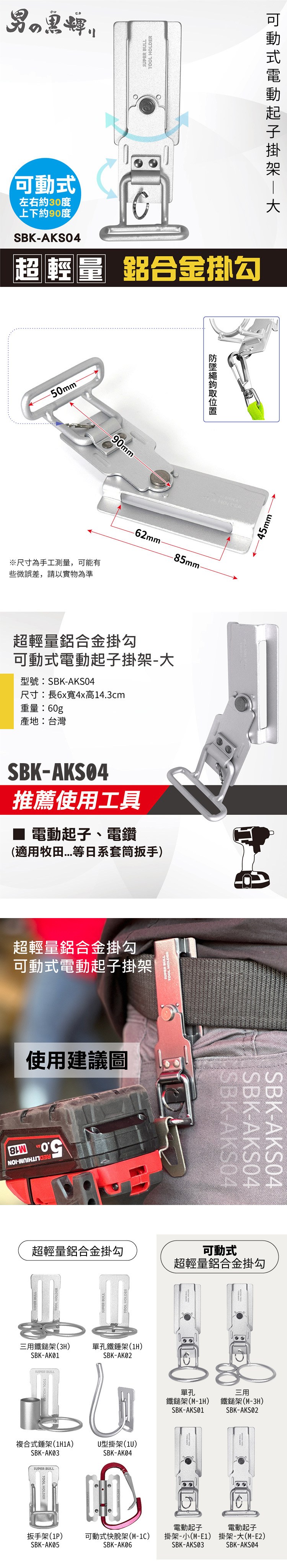 超輕量鋁合金掛勾-可動式電動起子掛架-大(M-E2) SBK-AKS04